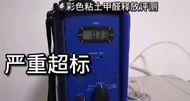 在开箱评测视频中也看到,测试者把粘土放进去烤箱36.5度,加热5分钟。测得粘土释放的甲醛浓度超标4倍。