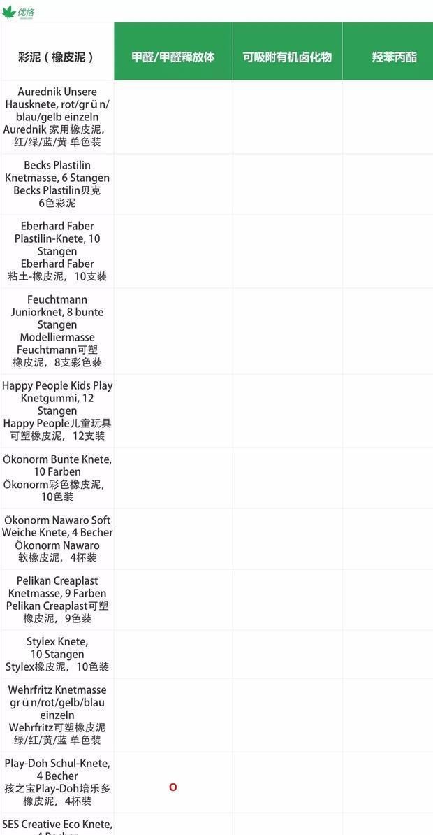 Uke 的德国实验室在 2017 年测试了 12 款橡皮泥,
