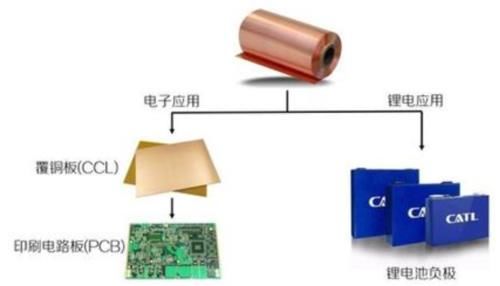 2、电解铜箔按下游应用分类又主要分为电子电路铜箔和锂电铜箔,前者用于PCB和覆铜板,后者用做锂电负极载体。