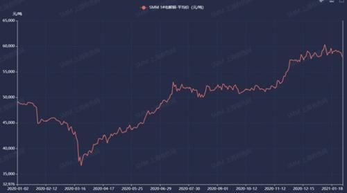 自2020年3月以来,铜价持续强势,截止2021年1日28日,SMM 1#电解铜平均价格报元/吨,涨幅高达58%。原材料价格的大涨推升了铜箔价格。
