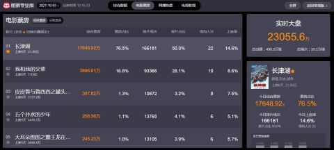 【摘要】从“猫眼专业版”实时票房数据显示,当前热映电影票房榜前五分别如下: 第一部《长津湖》 三位导演手法各异,但整体上没有碰撞出化学的火花,影片强行粘合部分过于明显和生硬